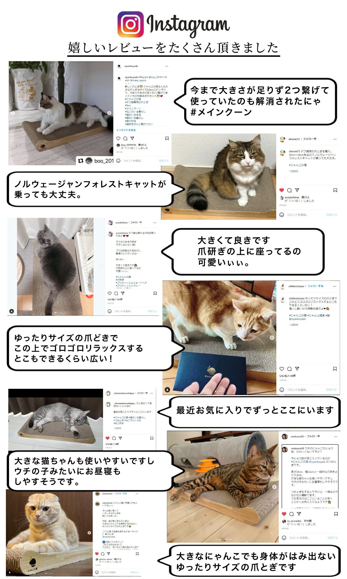 【 獣医師監修 もうはみ出さない 】ぽっちゃり猫、大きい猫ちゃんの為の爪とぎベッド。6kg以上の大きな猫ちゃんでも収まりゆったり横になれる大きいサイズ。猫ちゃんがゆったり寝れるのでかわいい写真、動画を取ることができます。面積が広いので普通サイズの猫ちゃんもゆったり伸び伸び。多頭飼いにもオススメ※サムネイルの猫ちゃんは9.4kgです。